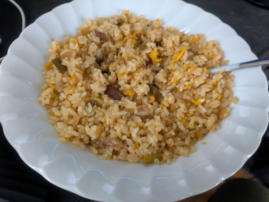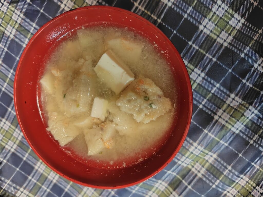 「炒飯を注ぐ」のではなく、カスピ海ヨーグルトを食べ終えた後の茶碗に、そのままお湯を注いでコーンスープを作る……!