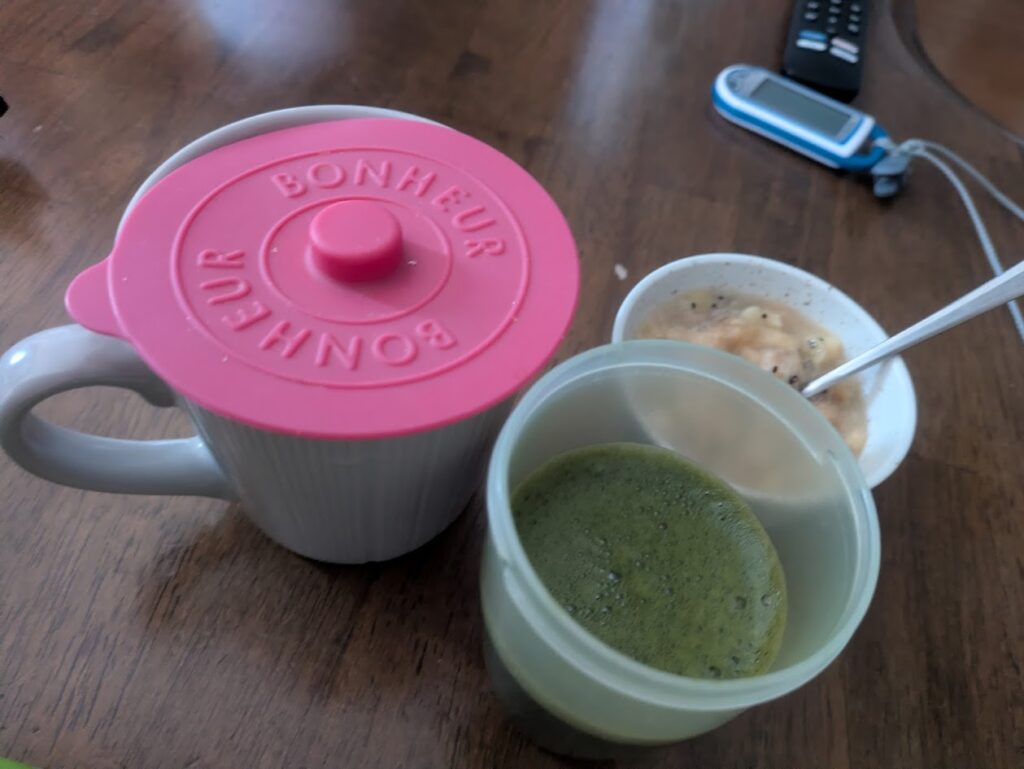 バナナ・キウイ・蜂蜜の自家製酵素、そして青汁。 4日間、欠かさず続けているこのルーティン。 この緑色の液体を飲んでいる時だけは、「だんだん太ってくる」という未来を全力で否定している自分がいます。