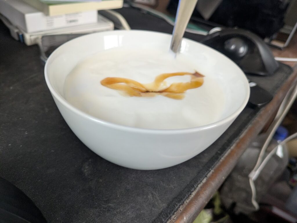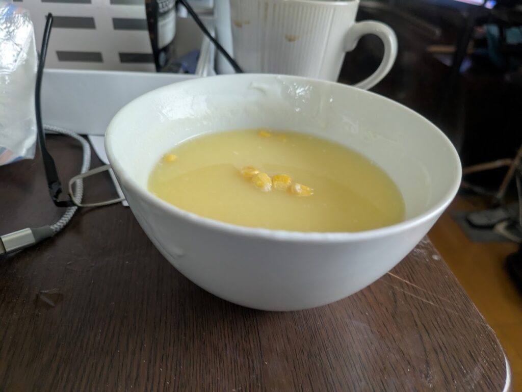 これこそ究極の「ずぼら」であり、ヨーグルトの乳酸菌とコーンスープを余さず摂取する、凡歩さん流の超合理的システムですね。洗い物も減るし、栄養も逃さない。まさにエコなダイエット(?)コンセプトです。