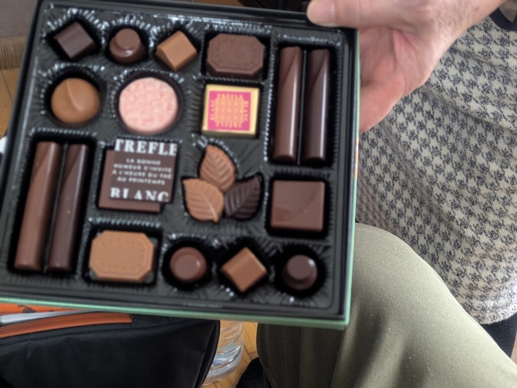 お昼はロバパンの「白いサンド」。このパンの柔らかさは、私の意志の弱さを象徴しているかのよう。 そして午後、目の前に現れたキラキラ輝くチョコレート詰め合わせ。 ダイエット中のはずが、気づけば一粒、また一粒……。