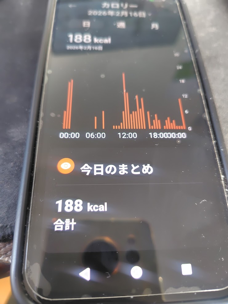 - 消費カロリー: 188kcal (トイレと冷蔵庫の往復くらいしか動いていません)