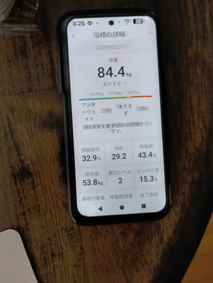 - 体重: 84.4kg(太りすぎ判定)