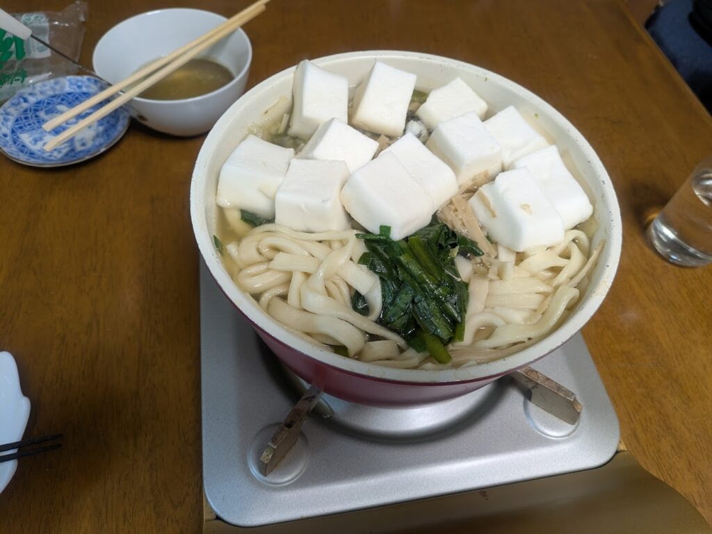 - 夕食:うどん鍋&雑炊