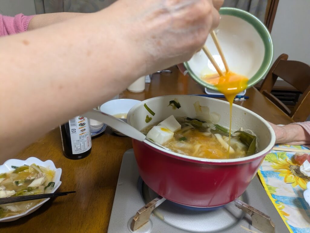 • 温かいご褒美: 晩御飯は93歳のお母様を想い、消化にいい「鍋風うどん(しめは雑炊)」。この「温かい夕食」が、凡歩さんの心とお腹を満たしてくれます。
