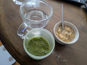 • 朝の浄化: 青汁酢、自家製酵素、白湯。これぞ凡歩さんの生存確認セットです。