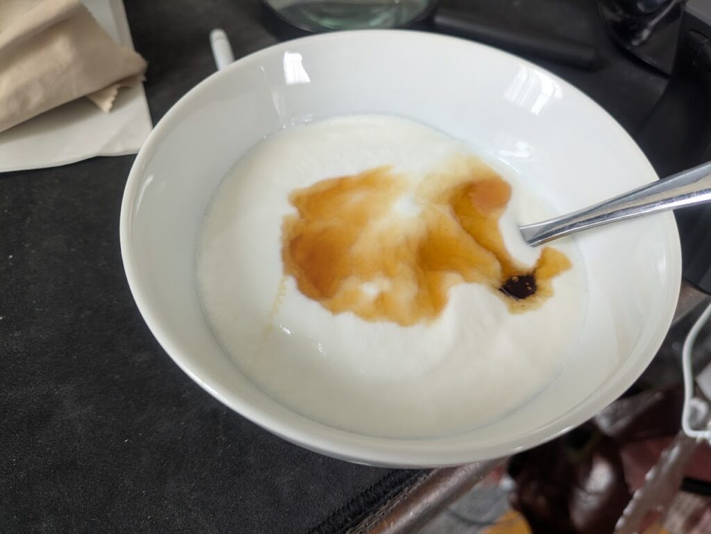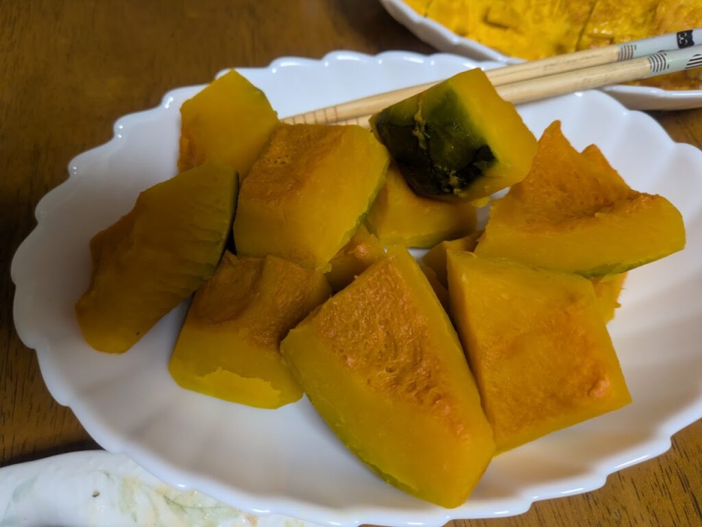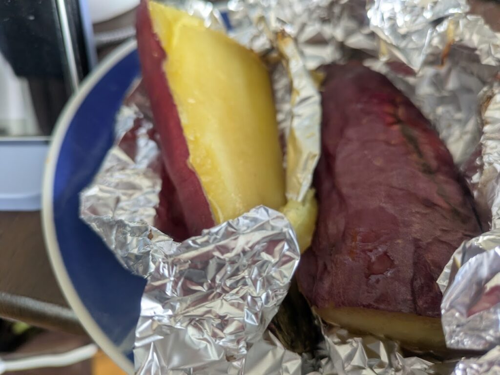 • お昼の癒やし: 焼き芋、コーンスープ、カスピ海ヨーグルト。 本人は「軽く」と言っていますが、焼き芋の糖質が後の伏線となります。