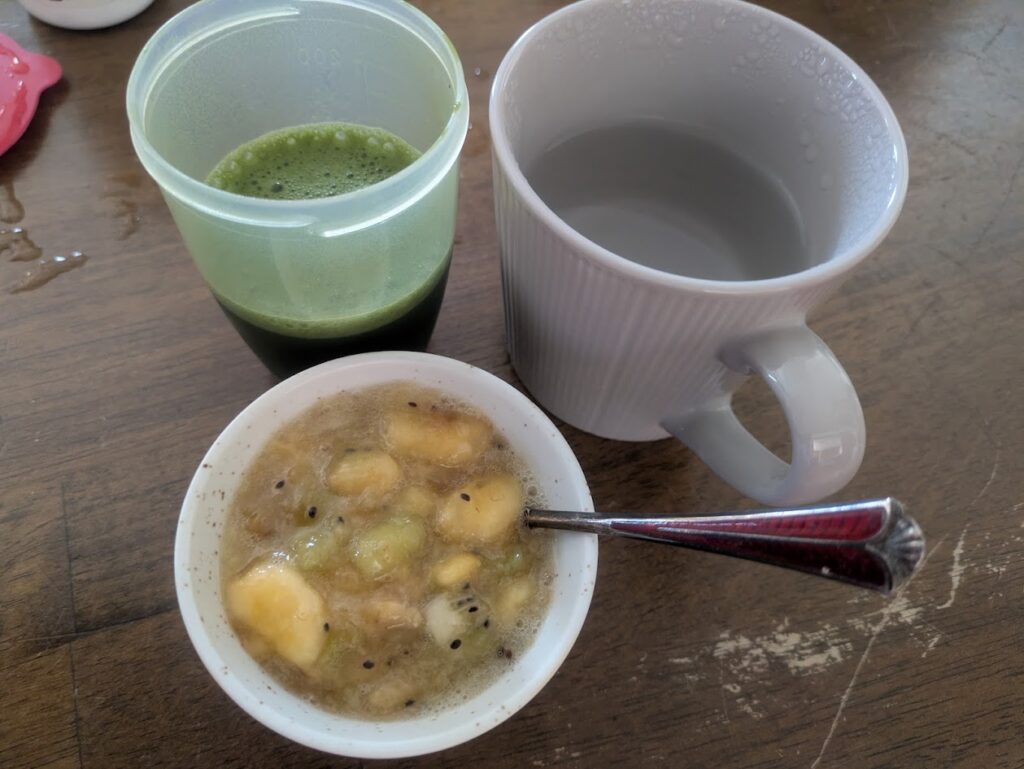 • 朝の浄化: 青汁クエン酸、自家製酵素、白湯。