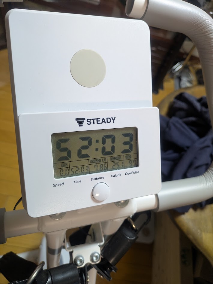 • エアロバイク(STEADY):52分03秒 これまでの「3分4秒」や、表示が「0:00」だった置物状態,が嘘のような激走です! 50分超えの運動は、あばら快復の何よりの証明ですね。
