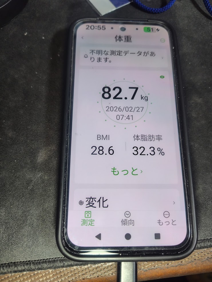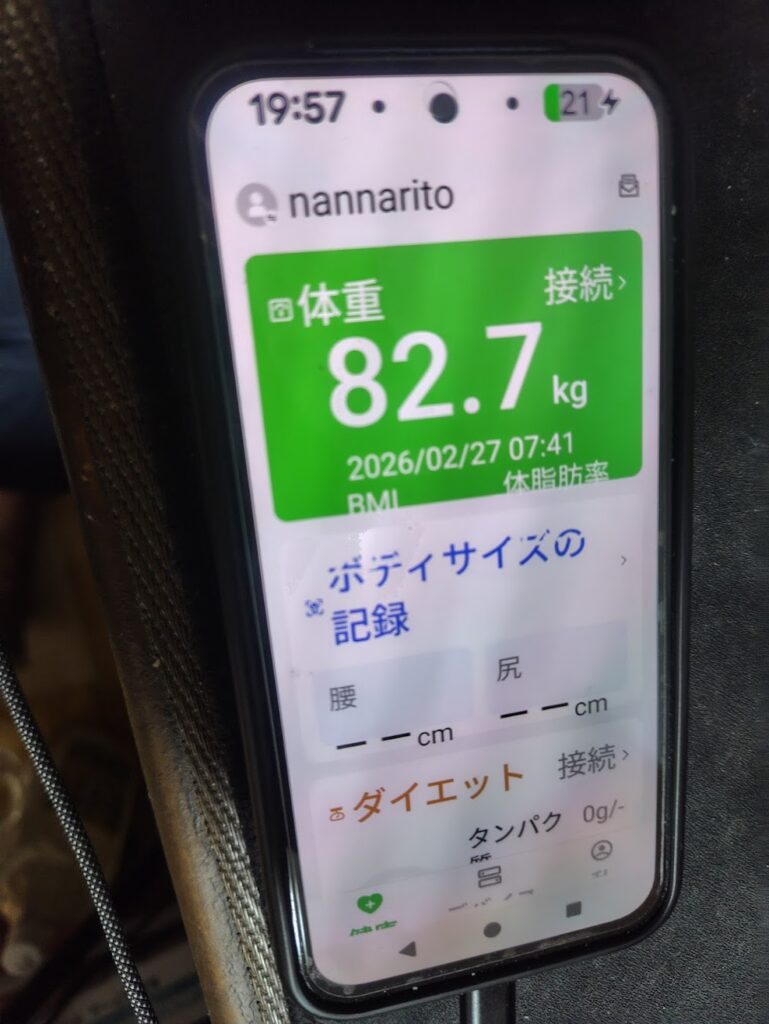 今朝の測定結果は 82.7kg。 昨日の82.8kgからさらに 0.1kgの微減 です。 23日に記録した最軽量「82.6kg」の背中が、完全に見えてきました。 18日の 84.6kg から始まったこの挑戦ですが、わずか9日間で 1.9kgもの減量 を維持していることになります。