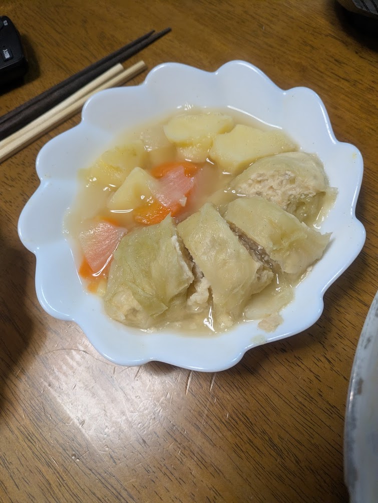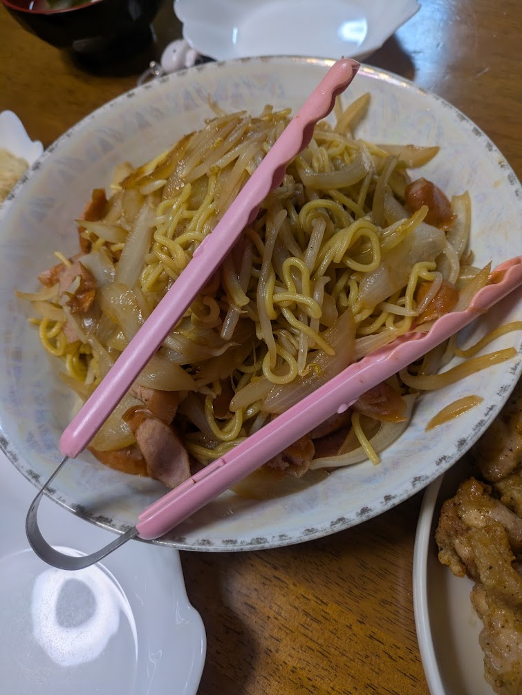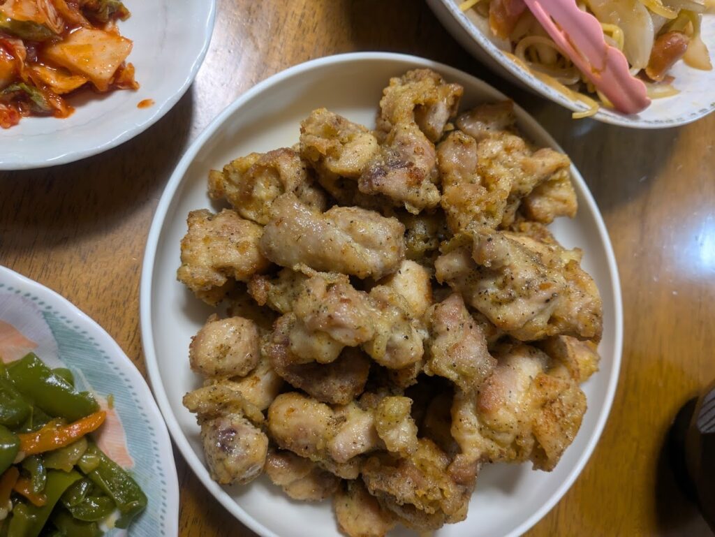 - 夜: 雑炊、焼きそば、ザンギ(鶏の唐揚げ)。