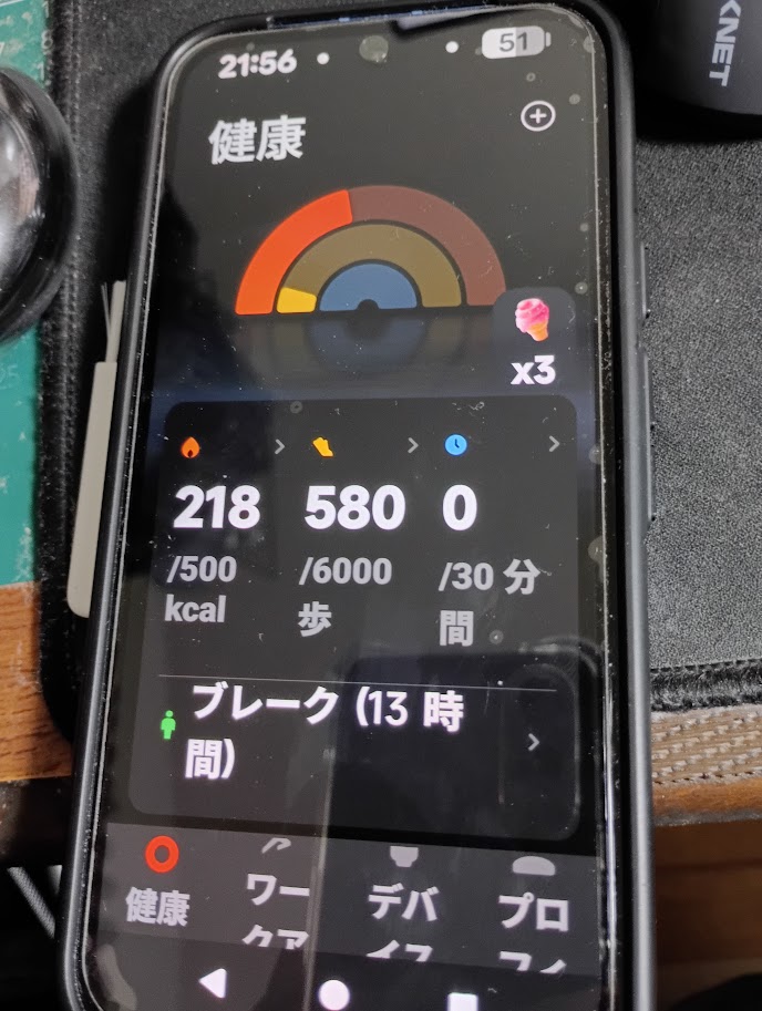 - 合計歩数:8,044歩(万歩計 7,464歩 + 携帯 580歩)