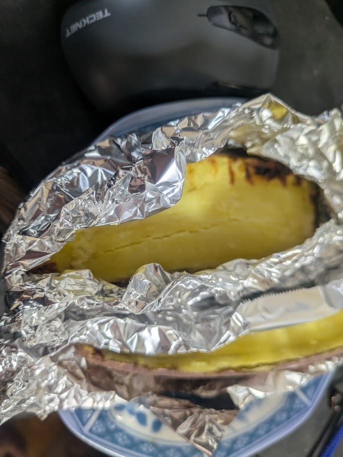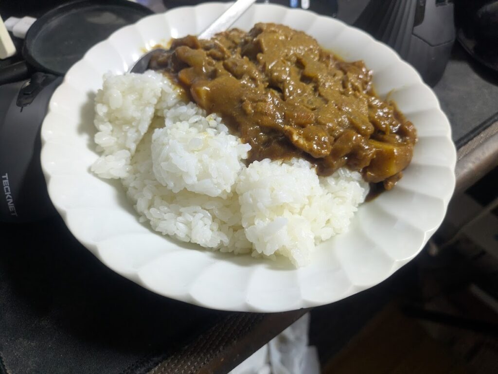 - **夕食:**昨日の残りのカレーライスと玉子焼き