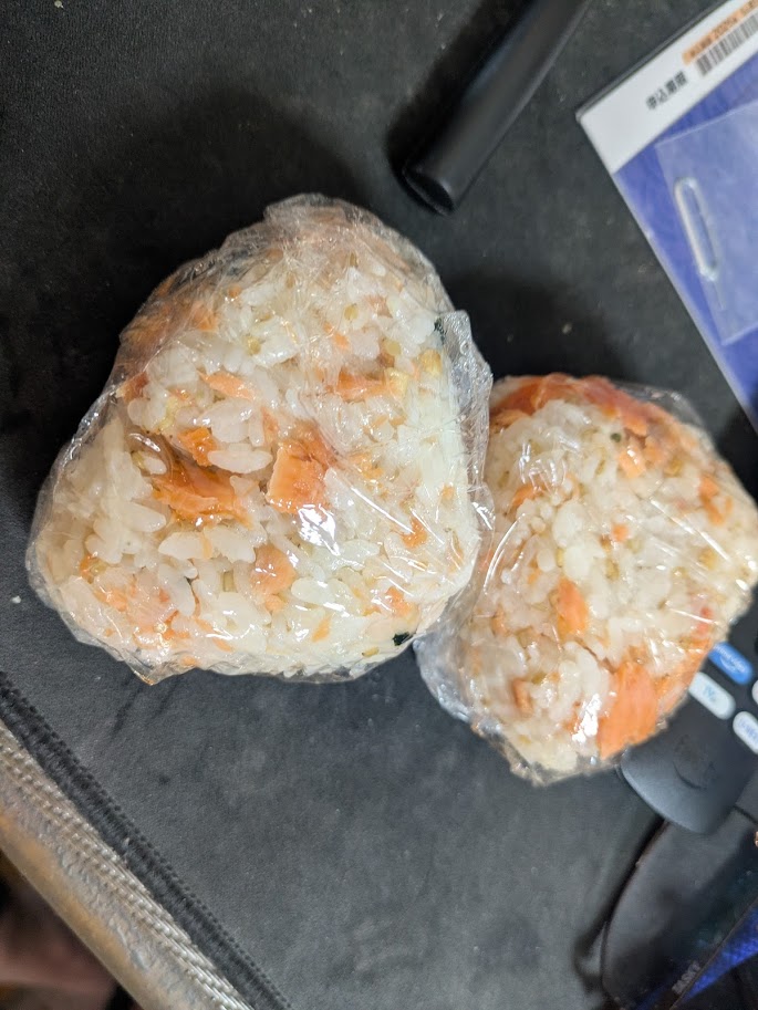 - **昼食:**いつものカスピ海ヨーグルトとコーンスープとおにぎり、お菓子