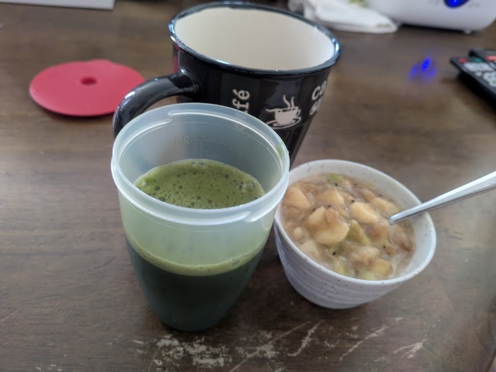 - **朝食:**いつものクエン酸青汁と自家製酵と白湯