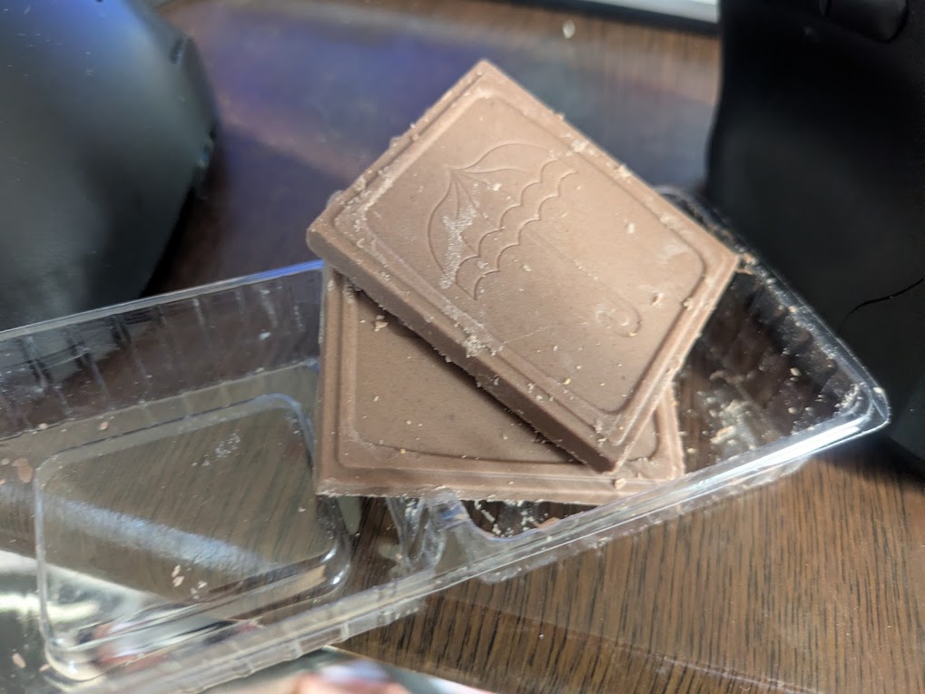 - **おやつ:**チョコレートとクッキー